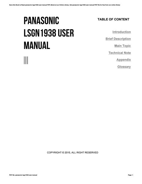 Reading Pdf panasonic lsgn1938 manual How to Download EBook Free PDF
